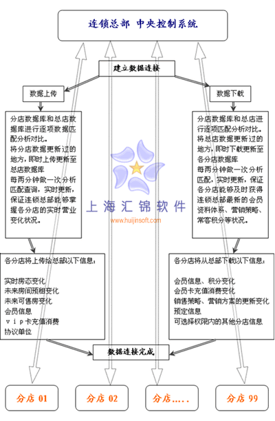 连锁管理可实现统一的客史档案积分、统一的连锁预定、营业数据对比分析、协议单位的统一管理、统一的会员消费卡管理